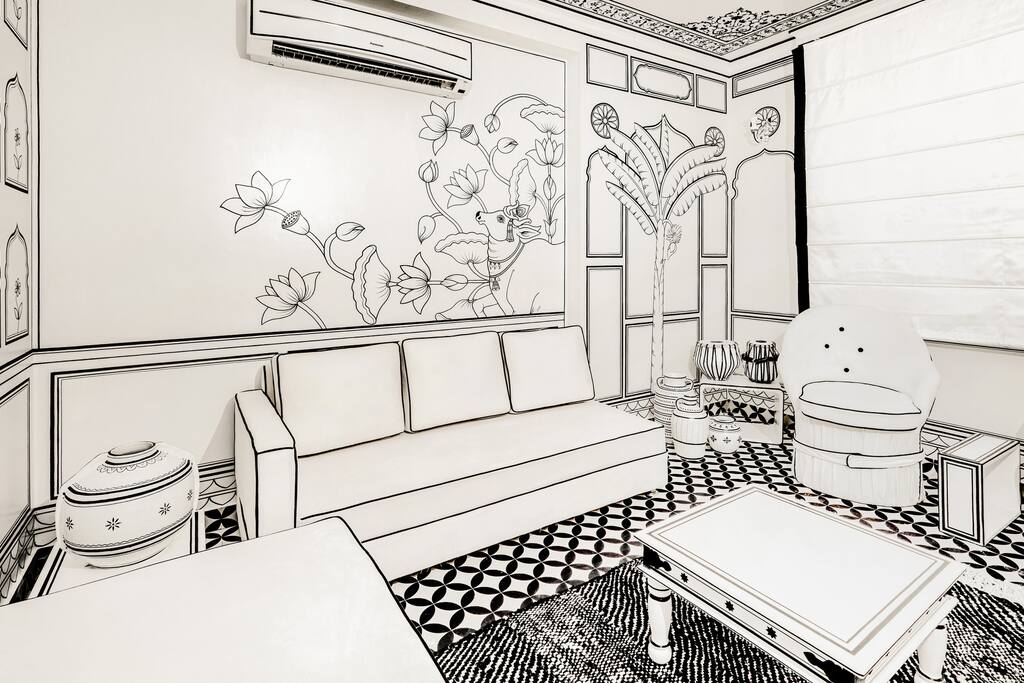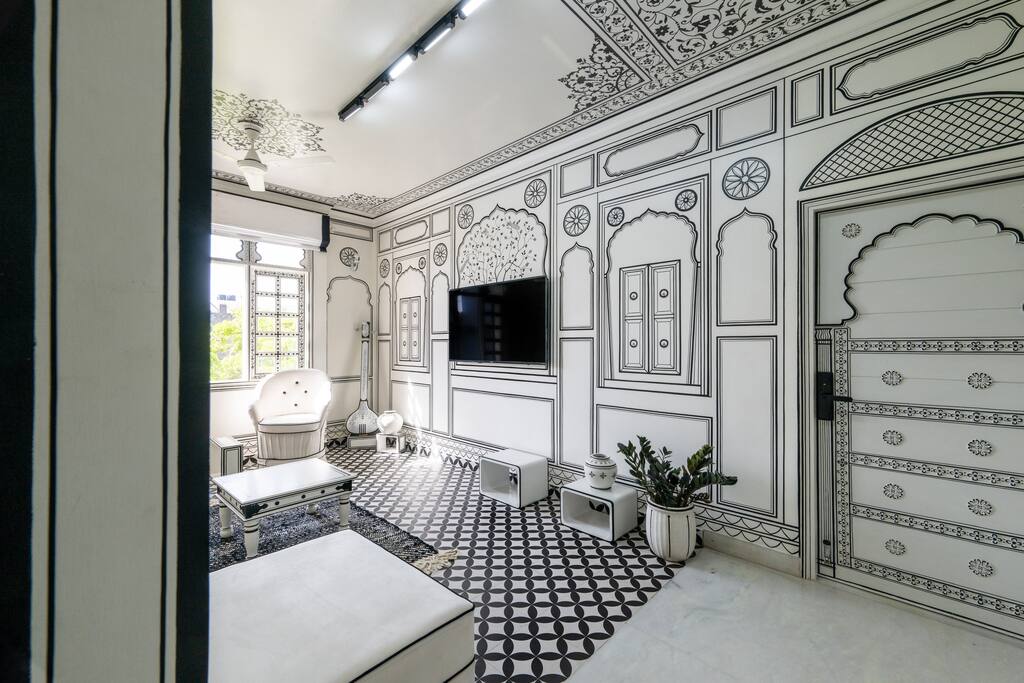 Discover our chic 1BHK flat in upscale C-Scheme, Jaipur. Artistic black-and-white design, king-sized bed, private balcony, and kitchenette. Explore the city's landmarks, markets, and culture on foot. Perfect for business or leisure. Book now for a unique experience CANDLE LIGHT DECOR EXPERIENCE — create your space magical (for pricing get in touch with us) Key Highlights ★ Breathe fresh with a Dyson Air Purifier — advanced filtration that removes pollutants and allergens, ensuring pristine indoor air. ★ Stay hydrated with Maeka Water from Auroville — structured, naturally energized water sourced from sustainable living practices for holistic well-being. ★ Pamper yourself with premium Kimirica toiletries — cruelty-free, plant-based essentials crafted for a spa-like bathing experience. ★ Experience ultimate comfort with a memory foam latex mattress. ★ Effortlessly control curtains through Alexa or remote automation. ★ Stay cool with a powerful 3.3-ton tower AC unit. ★ Enjoy a welcoming ambiance with BBW room fragrance. ★ Slumber in luxury with 300 TMC bed sheets. ★ Rest your head on memory foam pillows for added comfort. ★ Illuminate your space with Alexa-controlled lights. ★ Snuggle under an export-quality duvet for a cozy night. ★ Walk on elegance with handwoven customized carpets. ★ Adorn your windows with customized Bagru print curtains. ★ Create the perfect atmosphere with customized lighting. ★ Manage bathroom lights and exhaust effortlessly with Alexa. ★ Experience Alexa-controlled hot water from the geyser. ★ Illuminate your pantry with Alexa-controlled lights and exhaust. ★ Relax in the living room with Alexa-controlled curtains and lights. ★ Maintain hygiene with BBW hand wash provided. ★ Admire hand-painted Jal Mahal and Hawa Mahal artwork. ★ Marvel at palatial miniature ceiling paintings. ★ Customize your lighting with track lights that rotate 180 degrees and offer three colors. ★ Wrap yourself in luxury with Trident hand and bath towels. ★ Enjoy a stone mat for water soaking in the bathroom. ★ Experience a spa-like shower with body jets and a rain shower (70 lt geyser). ★ Revel in heritage style with customized bathroom tiles. ★ Find convenience with stocked crockery, cutlery, induction, and microwave. ★ Welcome guests with interior-matching doormats. ★ Ensure cleanliness with Takshi chemical cleaning and sanitation. ★ Admire Tanpura-facing clay women, old art tablas, natural Terracotta, Harappa style recreated pots. ★ Simplify lighting control with smart touch switches. ★ Adjust AC settings conveniently with Alexa-controlled infrared technology. ★ Enhance your decor with interior-matching pots and elephants. ★ Bring a touch of nature indoors with black plants. The guests would have exclusive access to the entire apartment The neighborhood is friendly and residential, local cafes are very close by and pubs and street food are nearby as well, C-Scheme is a prime neighborhood to live in. Readily available cab services like OLA and Uber are there and local auto rickshaws and buses are close to find and get around. The apartment is located on the second floor of the building and is accessible by stairs only. Bathroom is fitted with 4 body jets and a shower 🚿 it’s supported by a 70 litre geyser CANDLE LIGHT DECOR EXPERIENCE — create your space magical (for pricing get in touch with us) What’s included: • Real rose petal decoration • 20 fresh rose sticks styled across the space • Decorative pots with floating petals and tea lights • Around 30–40 real candles (we don’t use electric ones) to set a soft, romantic glow You’re welcome to choose either setup or combine both for a complete experience. Let us know your preference, and we’ll take care of the rest. Warm regards, Team Lallujiluxe